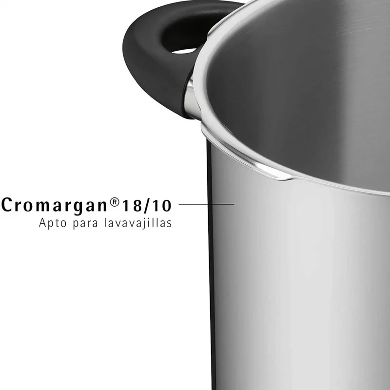 محصول زودپز وی ام اف دارای ویژگیهای بسیاری است که آشپزی را برای شما ساده و راحت میکند. یکی از ویژگیهای مهم آن خروج خودکار بخار اضافه و ایمنی در باز شدن درب است. داخل زودپز، مقیاس اندازهگیری درج شده و همچنین دارای سبد بخارپز است که برای پخت غذا بسیار مفید است. نشانگر سازگاری با 2 کد رنگی برای تنظیم دما (110 درجه سانتیگراد/119 درجه سانتیگراد) نیز در آن وجود دارد. دسته درب آن قابل جدا شدن است که نظافت آن را بسیار ساده میکند. جنس فولاد ضد زنگ Cromargan 18/10 آن، به راحتی در ماشین ظرفشویی شسته میشود و سازگاری و مقاومت در برابر اسید غذا را دارد. فشار شدید آن با حفظ دمای بالا، زمان پخت معمولی را تا ۷۰ درصد کوتاه میکند و با پخت به صورت تجمع بخار با شعله بسیار کم، انرژی را حدود ۵۰ درصد و ویتامینها و مواد مغذی و مواد معدنی را حفظ میکند. طراحی کلاسیک آن جاودانه است و عملکرد آن همیشه با جدیدترین فناوریها مطابقت دارد. بدون شک، زودپز وی ام اف یکی از بهترین گزینهها برای پخت و پز سالم و خوشمزه غذاست. طبق گذارشات CE تا سال 2022 هیچ زودپزی مقاوم تر از این برند ساخته نشده.