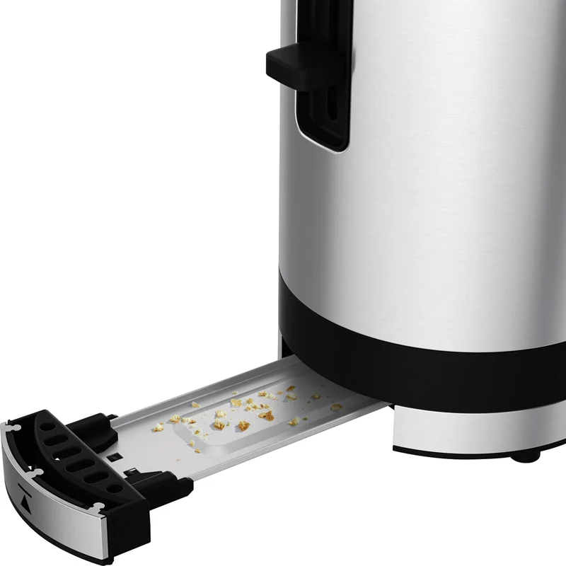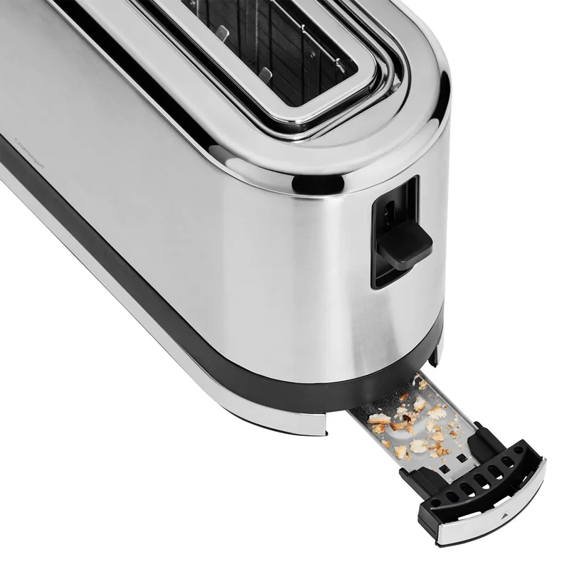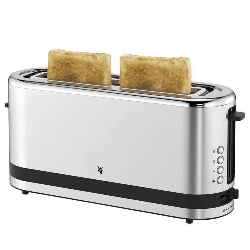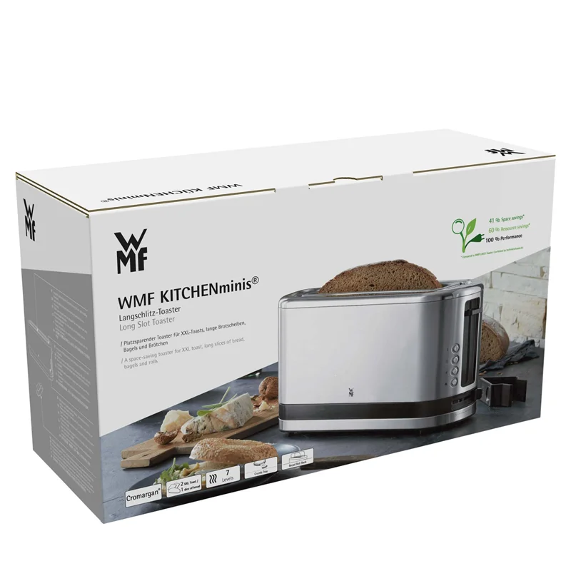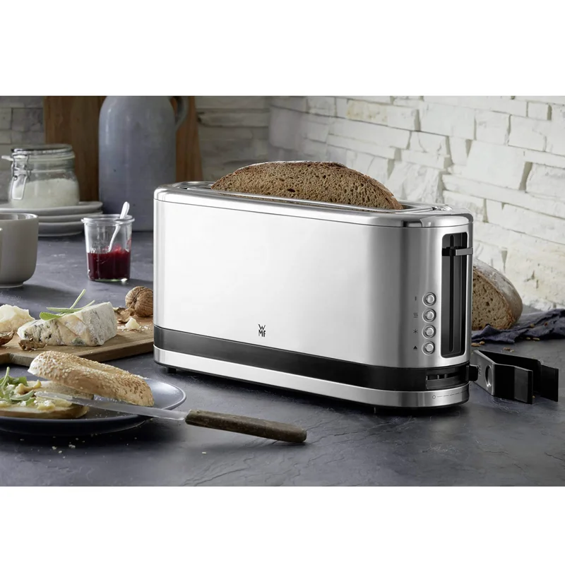 توستر وی ام اف WMF KÜCHENminis Langschlitz Toaster با دهانه بلند و یک تکه، علاوه بر صرفهجویی در فضا، با طراحی بسیار باریک خود، جایگاه ویژه ای در آشپزخانه شما خواهد داشت. با این توستر، دو تکه نان تست XXL و یا یک تکه نان بلند را میتوان به صورت یکنواخت و با قهوهای شدن مطلوب، پخت کرد. با وجود پایه نگهدارنده اضافی، نانهای شما را میتوانید به راحتی یخزدایی، پخت و یا به آرامی گرم کنید. همچنین، توستر شیار بلند WMF KÜCHENminis با قدرت 900 وات، خنکی بدنه خود را حفظ میکند در حالی که نان شما را با کیفیت بالا پخته میکند. WMF KÜCHENminis با ساخته شدن از فولاد ضدزنگ Cromargan® خود را به یکی از بهترین توسترهای موجود در بازار تبدیل کرده است. با داشتن این توستر، علاوه بر قابلیت پخت نانهای شما با کیفیت بالا، از زیبایی و کیفیت ساخت بالایی نیز برخوردار خواهید بود.