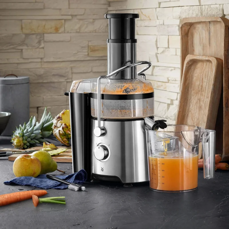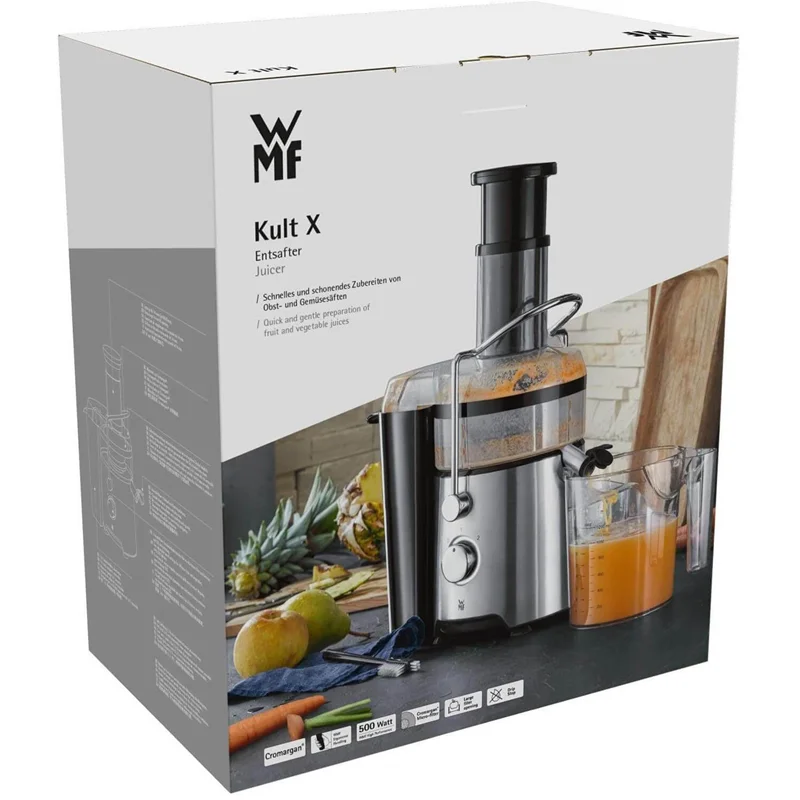 آبمیوه گیری وی ام اف مدل Kult X Juicer یک محصول با کیفیت و قابلیت های برتر در آبمیوه گیری ها است. این محصول با استفاده از تکنولوژی های پیشرفته و طراحی شیک و منحصر به فرد خود، امکان استخراج آبمیوه های تازه و مرغوب را ارائه می دهد. یکی از ویژگی ها قدرت موتور قوی آن است. موتور قدرتمندی که در این دستگاه استفاده می شود، به شما اجازه می دهد تا با سرعت بالا میوه ها و سبزیجات را استخراج کنید. طراحی جذاب و کاربردی نیز بایستی از دیگر مزیت های استفاده از این محصول به شمار رود. بدنه فولادی مستحکم این آبمیوه گیری همچنین بسیار با دوام بوده. همچنین، دارای سیستم هوشمند قدرت تنظیم شدت عملکرد آبمیوه گیری، برنامه ریزی سرعت های مختلف، جعبه مخلوط کن همراه با آبمیوه گیری، استفاده آسان از این محصول را فراهم کرده است. این محصول کمک می کند تا تمامی ویتامین ها و مواد مغذی موجود در میوه ها و سبزیجات حفظ شود و شما بتوانید از یک رژیم غذایی سالم و تازه نشاط بخش بهره ببرید. برنده بهترین طراحی آلمانی در سالهای 2021 و 2022 و جایزه بهترین طراحی iF 2018 2019 2020.