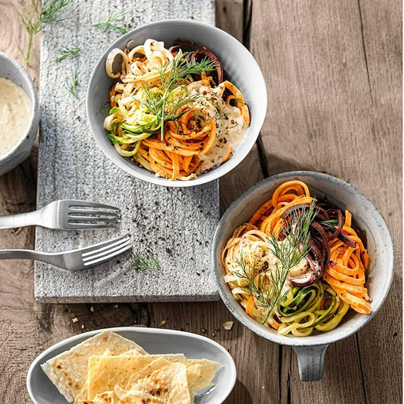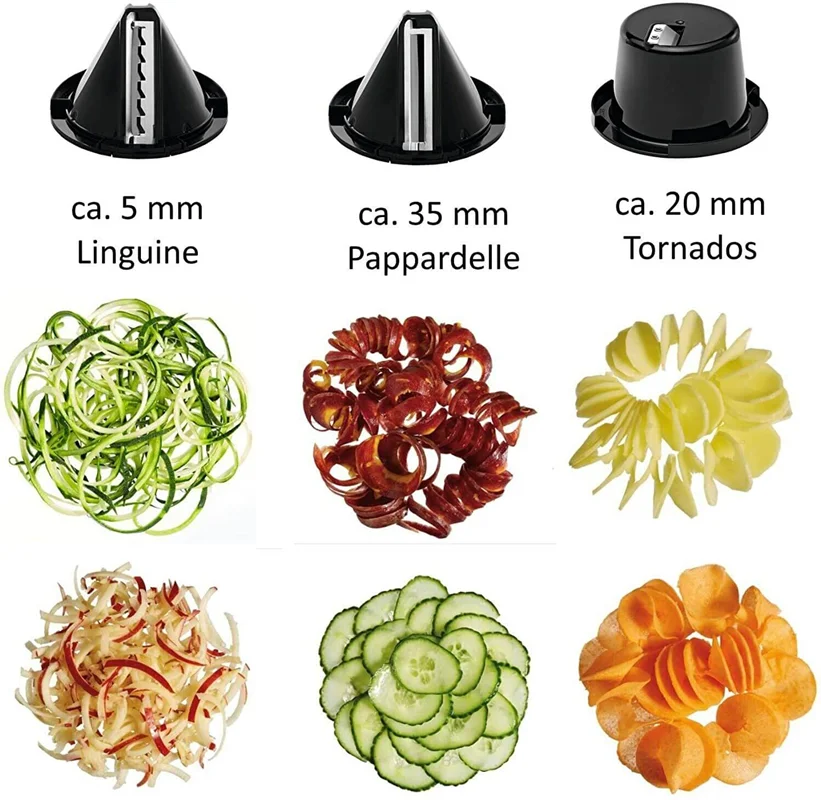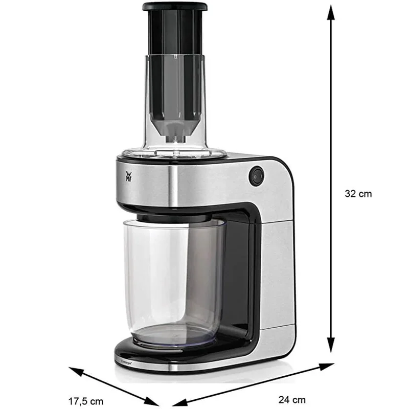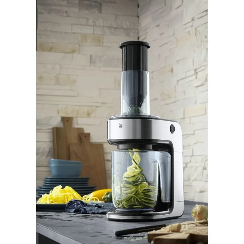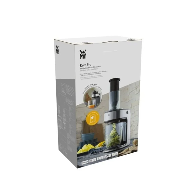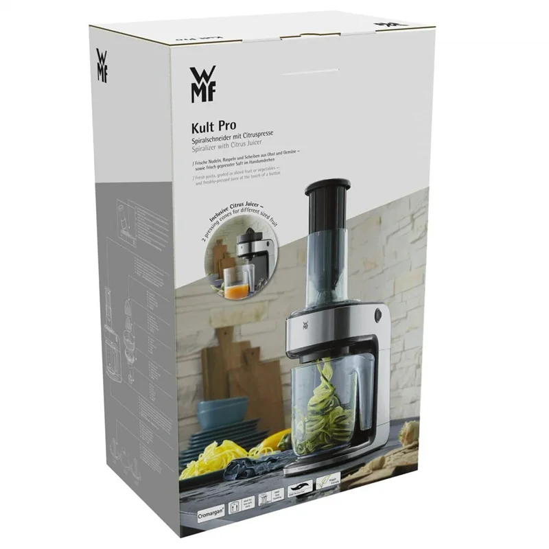 یک محصول فوق الاده را تجربه کنید رشته ساز و سالاد ساز و آب مرکبات گیری همه در یک محصول بسیار زیبا خود نمایی می کند . بسیار ساده ، سریع و سرشار از ویتامین و خوشمزه و رژیم غذایی کم کالری و متنوع با وی ام اف WMF Kult Pro Spiraliser آب مرکبات گیری و سالاد ساز یک درمان خالص برای بدن است . جنس بدنه و تیغه ها از فولاد کرومارگان می باشد که طول عمر و زیبایی دستگاه را همیشه تضمین می کند . یک ابزار عالی برای تهیه ماکارونی سبزیجات تازه ، رنده و برش میوه و سبزیجات است . مکانیزم اتوماتیک که با فشار شروع به کار می کند و قطع می کند . تمیز کردن آن بسیار آسان است و تمام قطعات قابل جدا شدن و قابل شستشو در ماشین ظرفشویی هستند .