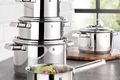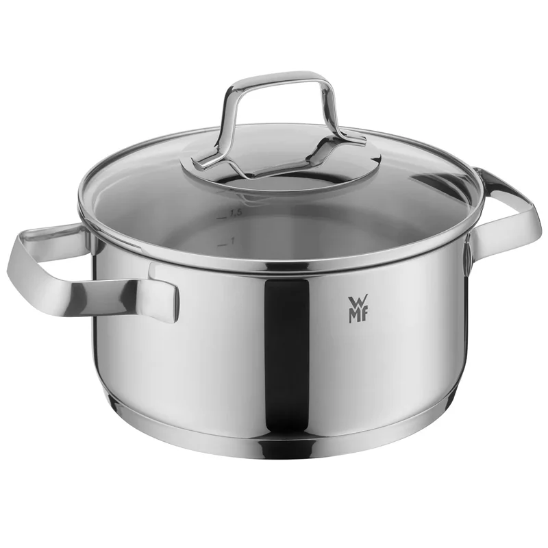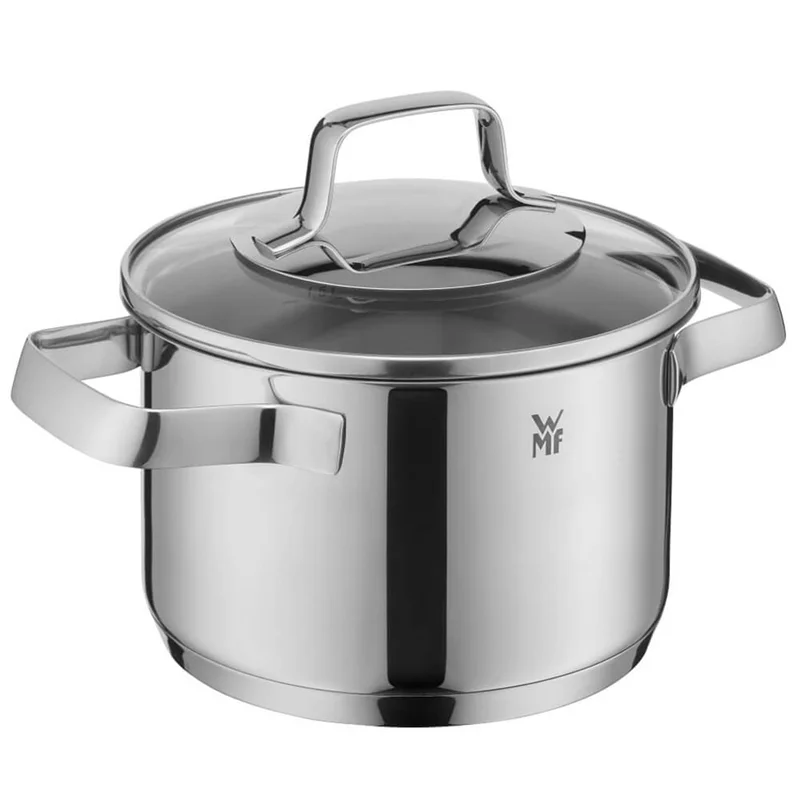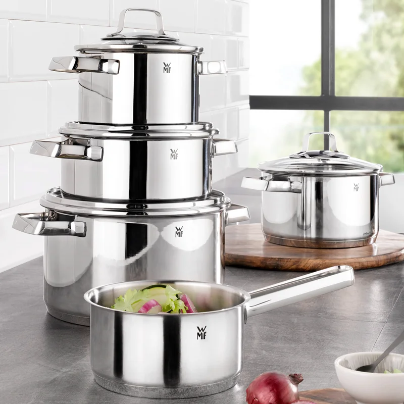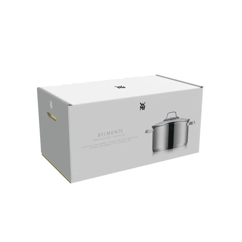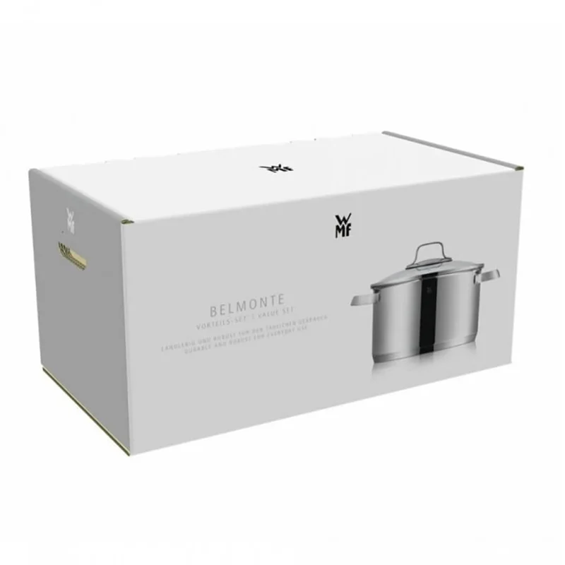 سرویس قابلمه برای عاشقان آشپزی ضروری است ، زیرا پختن مکرر غذاهای مختلف باعث استفاده همزمان از بسیاری از قابلمه ها می شود . مجموعه قابلمه های مجموعه وی ام اف wmf Belmonte یک کلاس ممتاز و یک ست 9 تکه را ارائه می دهد که مطمئناً با هر چالشی در آشپزخانه ما روبرو خواهد شد . قابلمه ها از فولاد ضد زنگ Cromargan® ساخته شده اند که به دلیل کیفیت کار بسیار بالا و مقاومت در برابر اسیدهای غذایی ارزشمند است . دارای پایه جهانی TransTherm® هستند که گرما را خیلی سریع جذب میکند و آن را به طور یکنواخت در طول پخت پخش میکند . کف TransTherm® همچنین امکان استفاده از قابلمه ها را بر روی هر نوع اجاق گاز ، از جمله اجاق گاز القایی ، ممکن می سازد . قابلمه ها دارای لبه سرریز هست که ریختن محتویات از ظرف را آسان می کند . درب های موجود در مجموعه از شیشه مرغوب ساخته شده است . فرم مینیمالیستی ظروف همراه با درب محدب شیشه ای جلوه شگفت انگیزی ایجاد می کند . این ترکیب برای هر آشپزخانه ای مناسب است . برنده بهترین طراحی آلمانی در سالهای 2023 و 2022 و جایزه بهترین طراحی iF 2022 2023