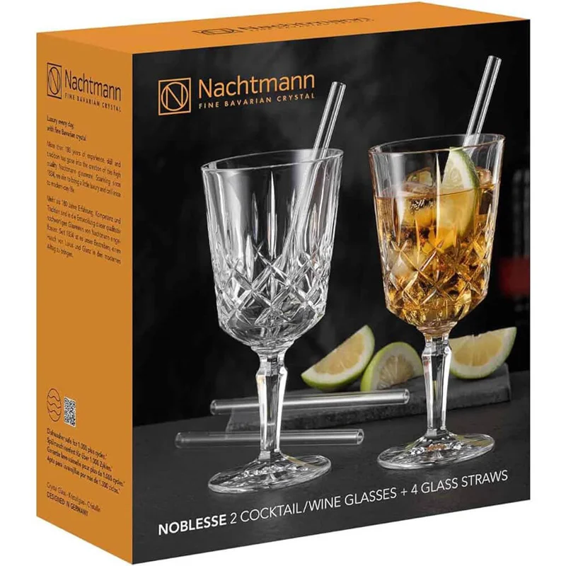 با لیوانهای ناخمن مدل Nachtmann Noblesse Cocktail، لذت نوشیدنیهای خود را دو چندان کنید. این بسته ۲ عددی با طراحی فوقالعاده و کریستالهای درخشان، ترکیبی از زیبایی و کیفیت را به میز شما میآورد. خرید این لیوانهای لوکس، انتخابی مناسب برای هر مناسبت و پذیرایی است. همین حالا اقدام کنید! از ویژگی های لیوان ناخمن مدل Nachtmann Noblesse Wine بسته 2 عددی شفافیت و زیبایی آن است . کل مجموعه از شیشه کریستال با کیفیت بالا ساخته شده است و به راحتی قابل مراقبت است و می توان آن را در ماشین ظرفشویی تمیز کرد . سری Noblesse حسی از لوکس را به خانه شما می آورد و احیای طراحی کلاسیک را به شما می دهد . این محصولات که به زیبایی از بهترین کریستال برش خورده اند ، برای هرکسی که می خواهد درخشندگی جدیدی را به خانه خود بیاورد عالی است . وزن هر لیوان 320 گرم و حجم آن 355 میلی لیتر می باشد . جنس کریستال های ناخمن بدون سرب می باشد . این بسته شامل 2 عدد لیوان و 2 عدد نی کریستالی و 1 عدد شوینده داخل نی می باشد .