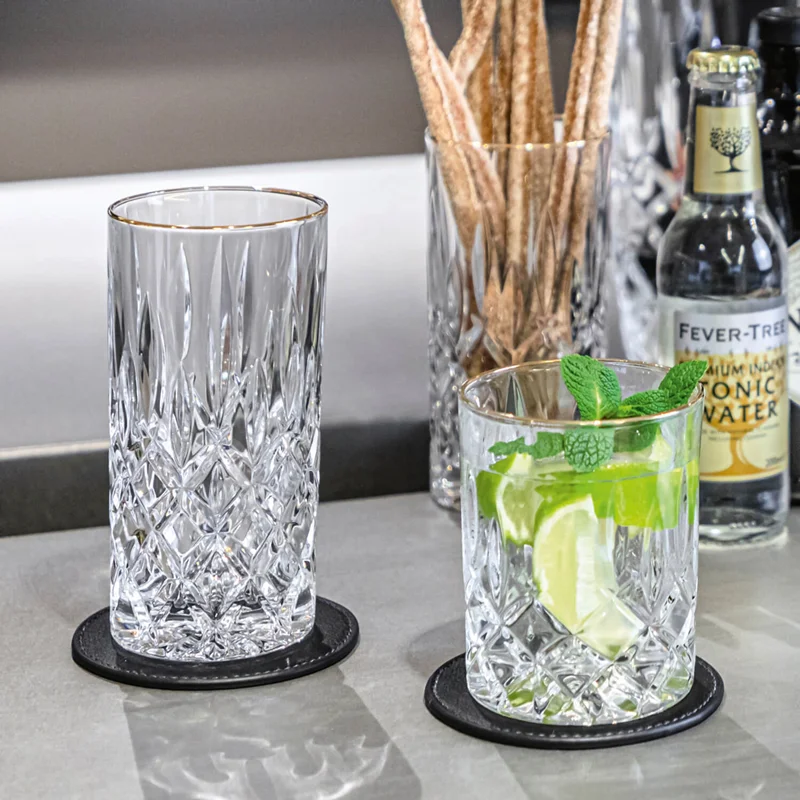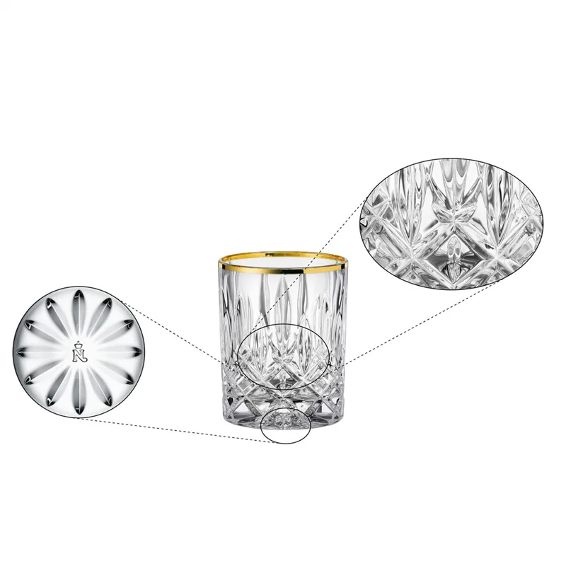 با لیوانهای ناخمن مدل Nachtmann Noblesse GOLD، به میز شما جلال و شکوه ببخشید. این بسته دو عددی با طراحی ظریف و پوشش طلایی، انتخابی ایدهآل برای مهمانیها و لحظات خاص شماست. کیفیت برتر و زیبایی چشمنواز این لیوانها، تجربه نوشیدنی شما را به سطح بالاتری میبرد. تجربه لوکس را از دست ندهید! لیوان ناخمن مدل Nachtmann Noblesse GOLD بسته 2 عددی یک مجموعه ویژه و منحصر به فرد است که از ترکیب کریستال و طلا ساخته شده است . سری Noblesse حسی از لوکس را به خانه شما می آورد و احیای طراحی کلاسیک را به شما می دهد. این محصولات که به زیبایی از بهترین کریستال برش خورده اند، برای هرکسی که می خواهد درخشندگی جدیدی را به خانه خود بیاورد عالی است . طراحی لبه طلایی این لیوان ها رنگ و جلوه بسیاری خاصی را به میز پذیرایی شما می دهد .