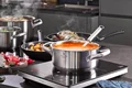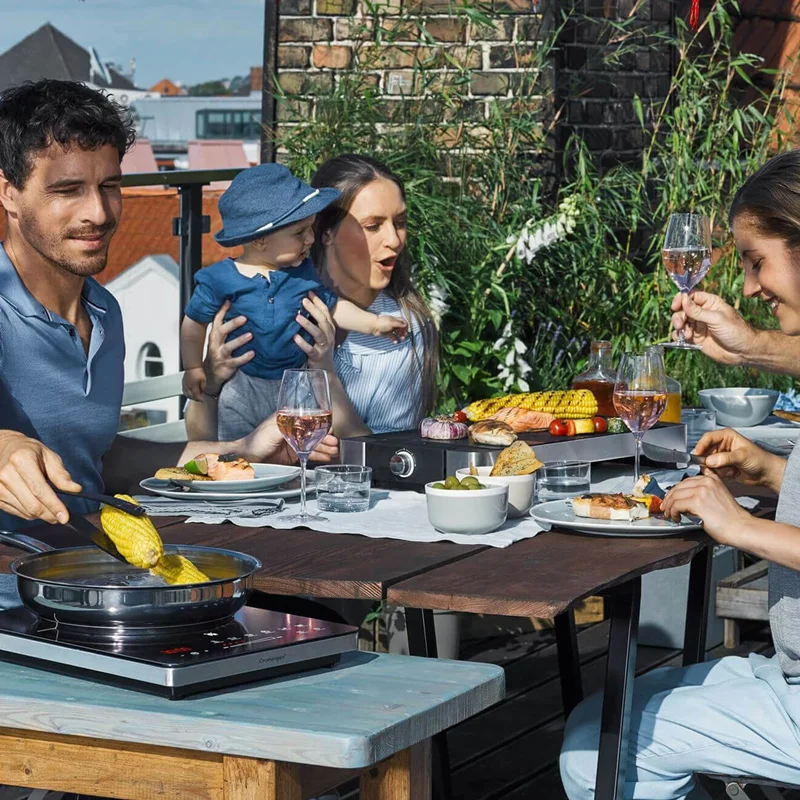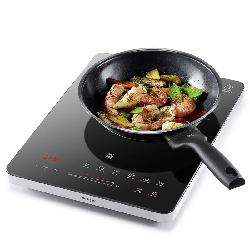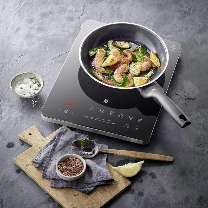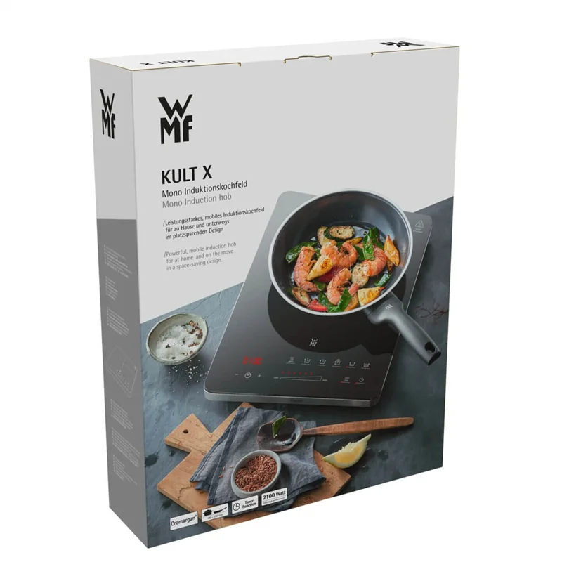 اجاق صفحه ای برقی وی ام اف مدل WMF Kult X Doppel Induktionskochfeld با 6 برنامه اتوماتیک شامل گرم نگه داشتن غذا تا دمای سرو، گرم کردن شیر، دم کردن، پخت و پز در آب داغ زیر نقطه جوش، بخارپز کردن، تفت دادن، پخت سریع گوشت و عملکرد دستی با 8 سطح گرما، به راحتی از طریق کنترل اسلاید قابل تنظیم است. عملکرد تایمر با نمایشگر دیجیتال لذت آشپزی سیار برای داخل و خارج از خانه را برای شما لذت بخش می کند. برای همه کسانی که می خواهند از حداکثر امکانات هنگام پختن، تفت دادن، دم کردن و گرم نگه داشتن غذا لذت ببرند. سر میز یا در دفتر کار. با صرفه جویی در فضا به قدری قدرتمند است که دمای آن به همان سرعتی که هنگام پخت و پز با گاز بالا می رود بالا می رود. به سادگی ظرف را روی میدان القایی قرار دهید و هشت سطح توان یا شش برنامه از پیش تعیین شده را از طریق صفحه نمایش لمسی انتخاب کنید. حتی با عملکرد تقویت کننده برای گرم کردن سریع، هیچ چیز نمی تواند بسوزد. و اگر غذا سر برود، سطح شیشه سرامیک را می توان به راحتی تمیز کرد. محصول با محفظه فولاد کرومارگان ضد زنگ زیبا و با کیفیت عالی است. جایزه بهترین طراحی iF 2018 2020.