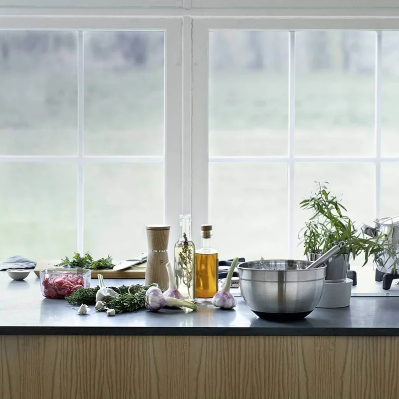 کاسه استیل وی ام اف مدل WMF Kitchen bowl با ساختاری از فولاد کرومارگان و سیلیکون، طراحی بسیار زیبایی دارد. این کاسه WMF Kitchen bowl ضد زنگ بوده و به دلیل طراحی خاص خود، در هنگام تخلیه آب و مواد آبکی از کنارهها ریزش نمیکند و جلوه زیبایی بسیاری به آشپزخانه شما میدهد. این کاسه به عنوان یک محصول طراحی شده است که هم کارایی و هم زیبایی را با هم ترکیب کرده است. با استفاده از این کاسه میتوانید به راحتی مواد مختلف را ذخیره و مخلوط کنید. ضخامت مناسب دیوارههای آن، به آن اجازه میدهد که به عنوان یک کاسه عالی برای استفاده در آشپزخانه استفاده شود.همچنین، این کاسه برنده جایزه بهترین طراحی آلمانی در سال 2019 میباشد، که نشان از کیفیت بالای آن دارد.